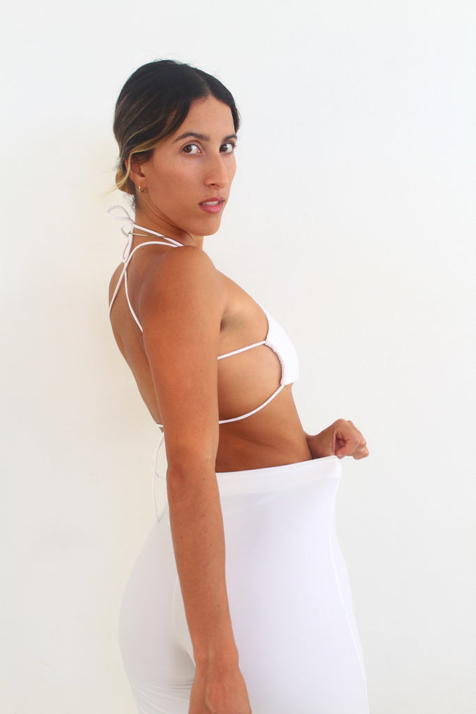 The Divine pants are flare fit bottoms made from recycled fabric that bring both style and comfort, with a tie-able elastic waistband that allows you to adjust the fit to your preference. Pair with our Mãe Terra Top to finish the look.